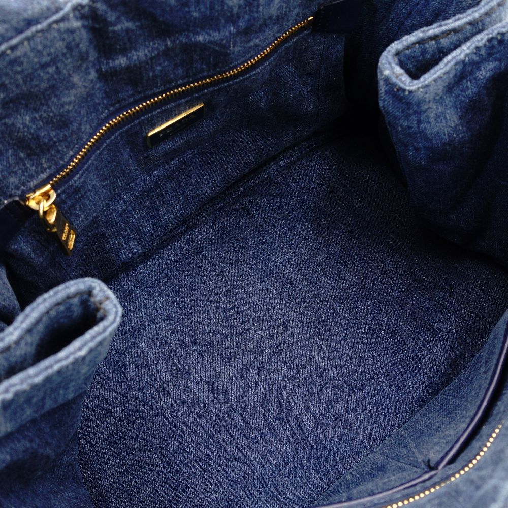 PRADA Canapa Medium Denim Blue Canvas Handbag with Logo 7-7-246