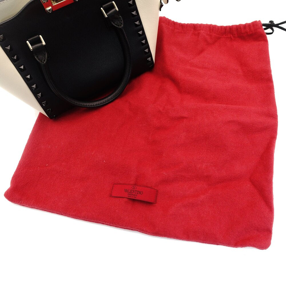 Valentino Garavani Rock Stud 2-Way Handbag Black × White Leather Black 7-7-312