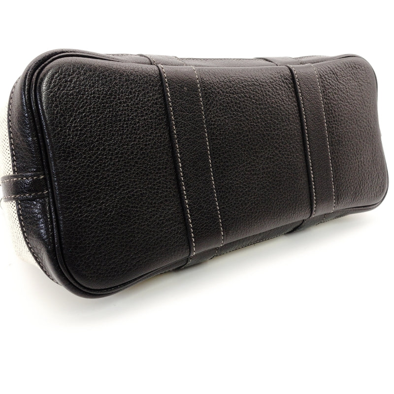HERMES Garden Party TPM Canvas Leather Twill Ash Beige × Black □I Stamped Handbag 7-7-826