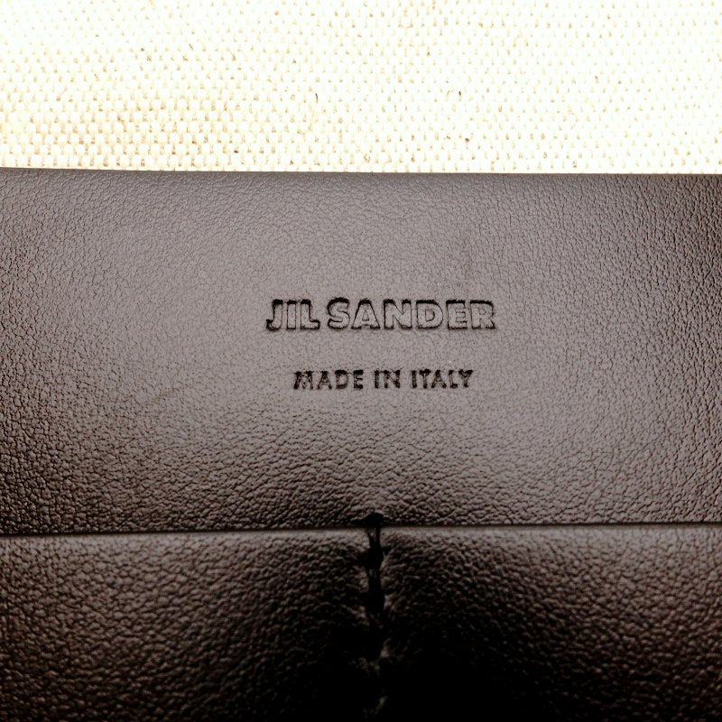 JIL SANDER Tote Bag Canvas Leather Beige × Black Large Size Logo 7-8-495