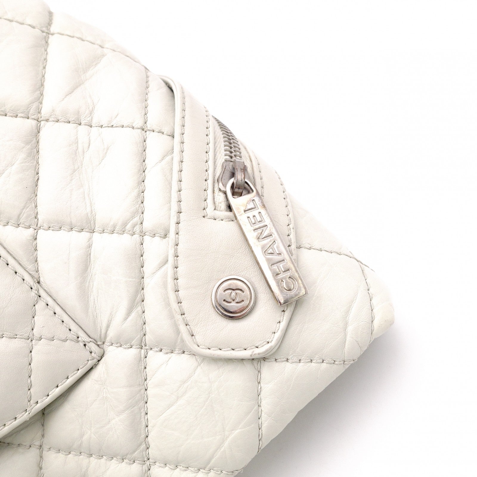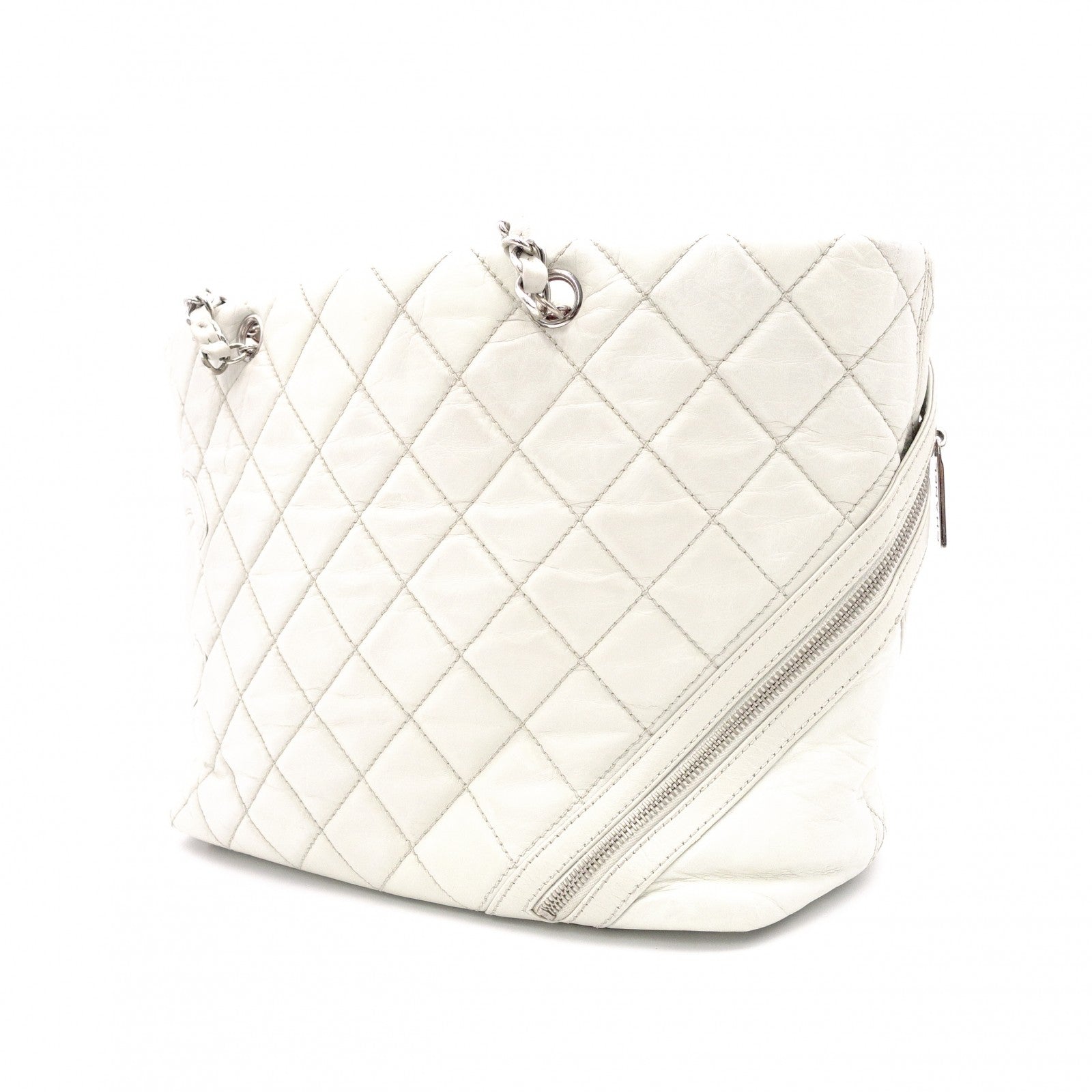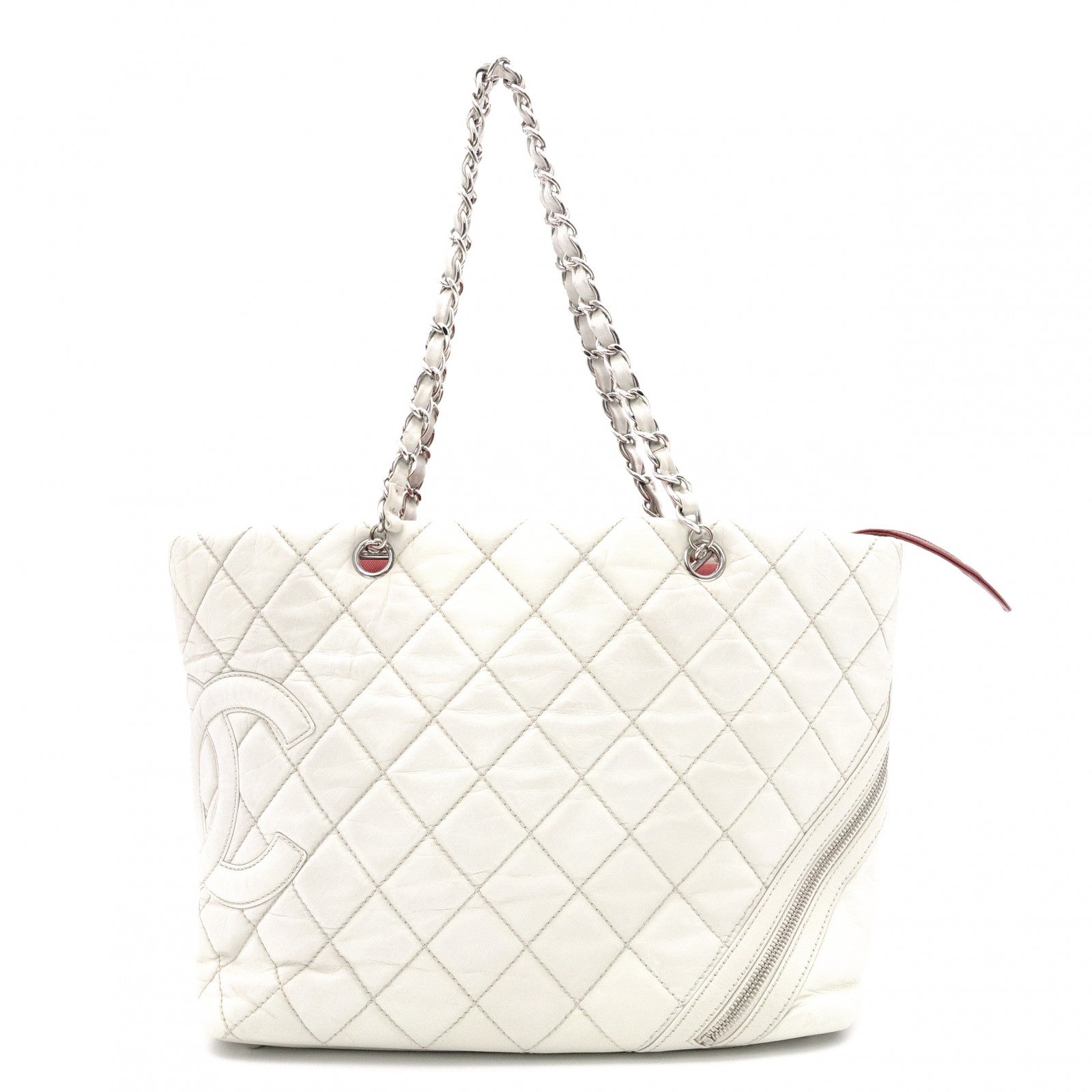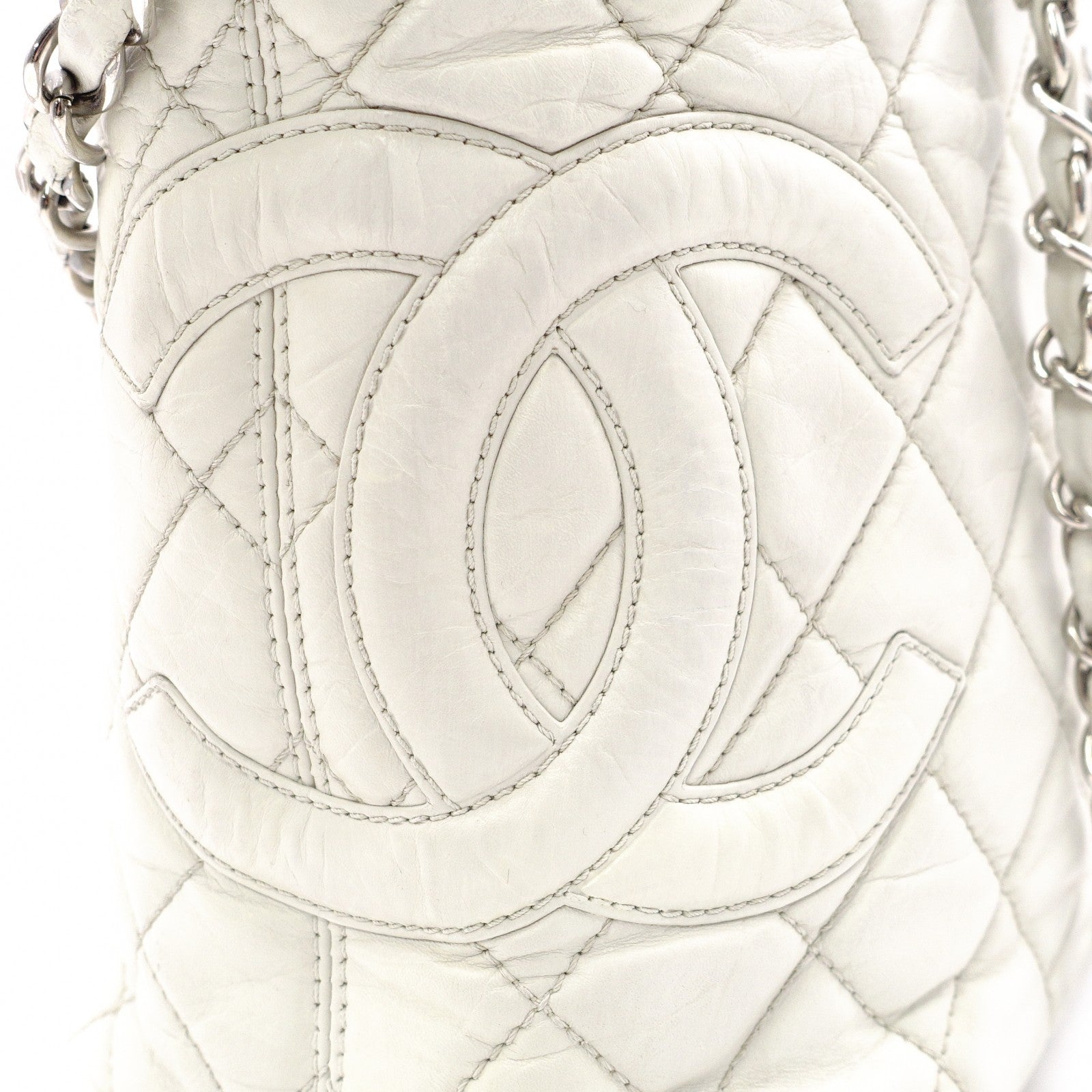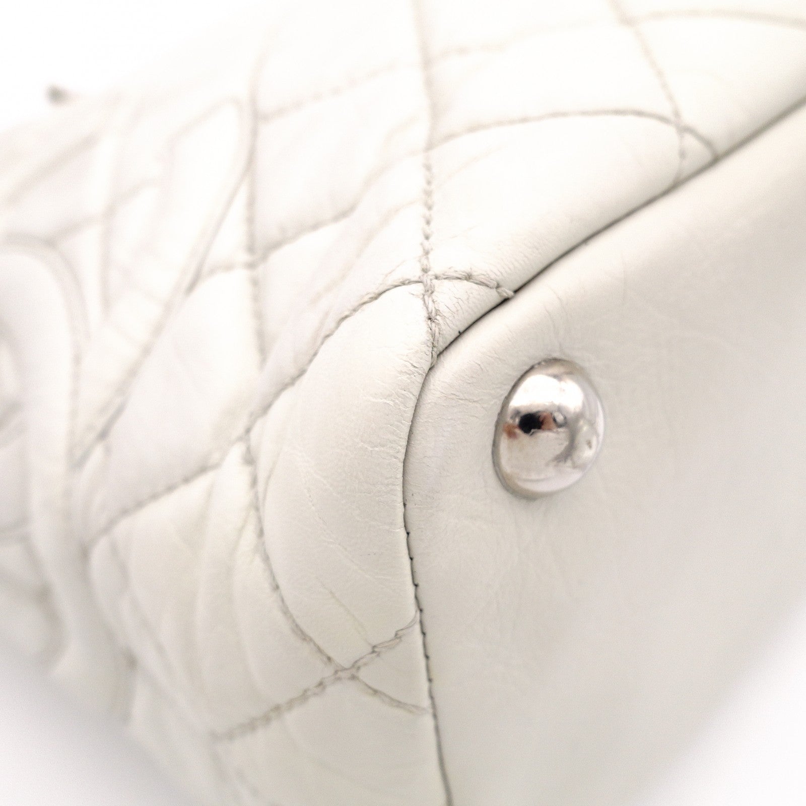 CHANEL Caviar Skin Cambon Line Shoulder Bag, Leather, White, Silver Hardware