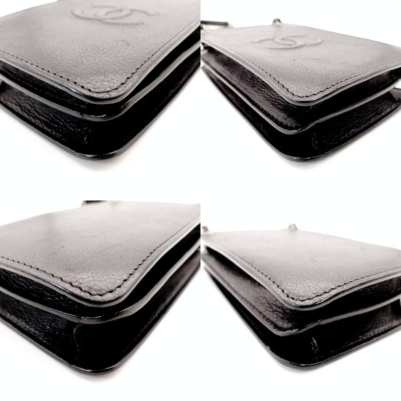 CHANEL Coco Mark Phone Holder Chain Shoulder Bag Black Leather Black CC Logo Silver Hardware 7-8-761