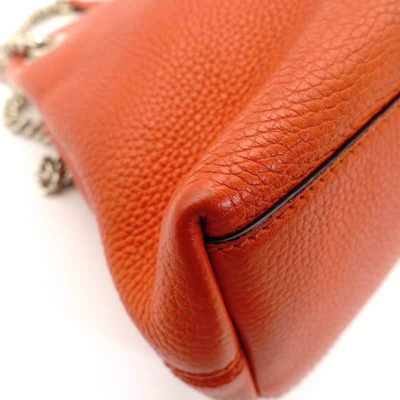 GUCCI Soho Chain Shoulder Bag Leather Orange Gold Hardware GG Logo 7-9-097