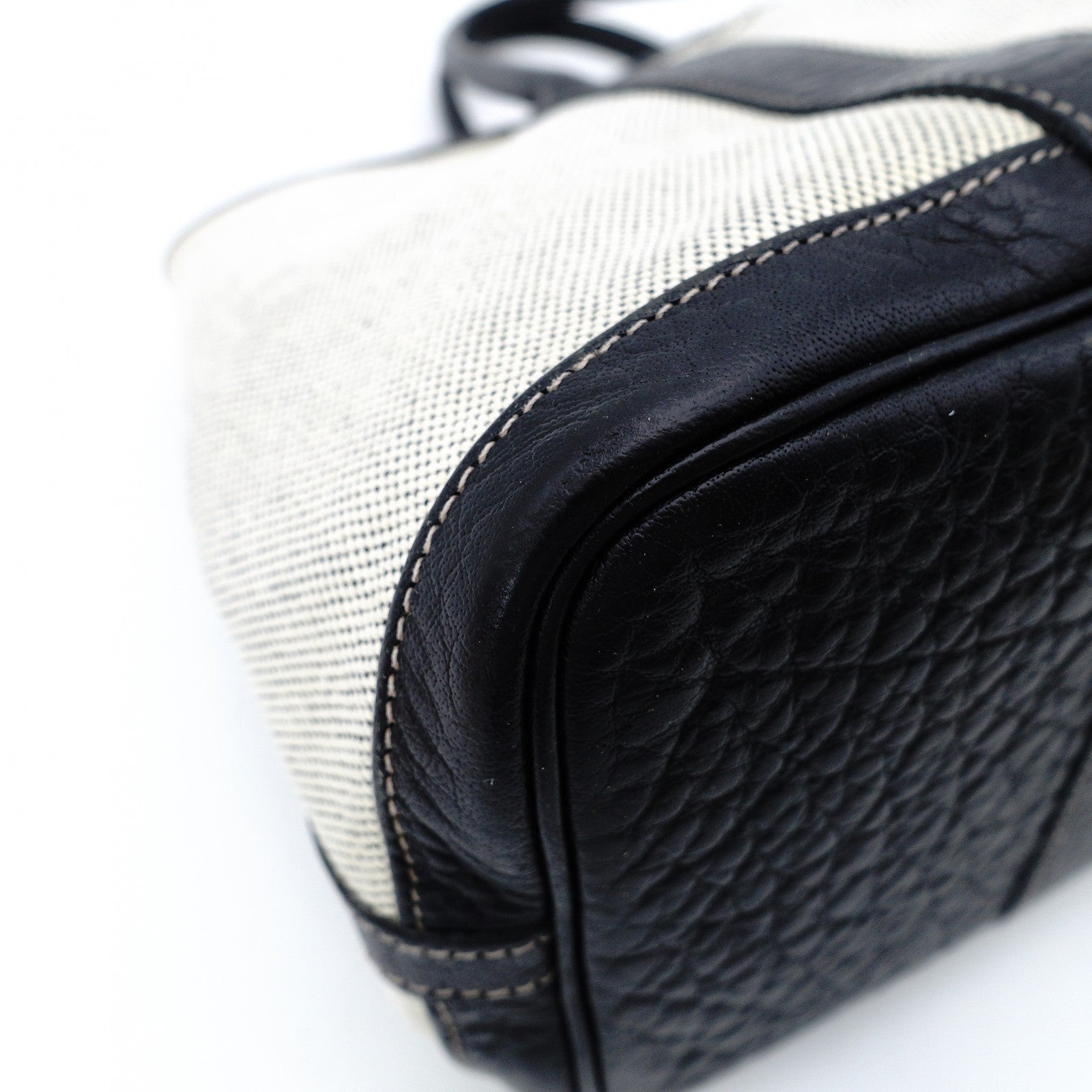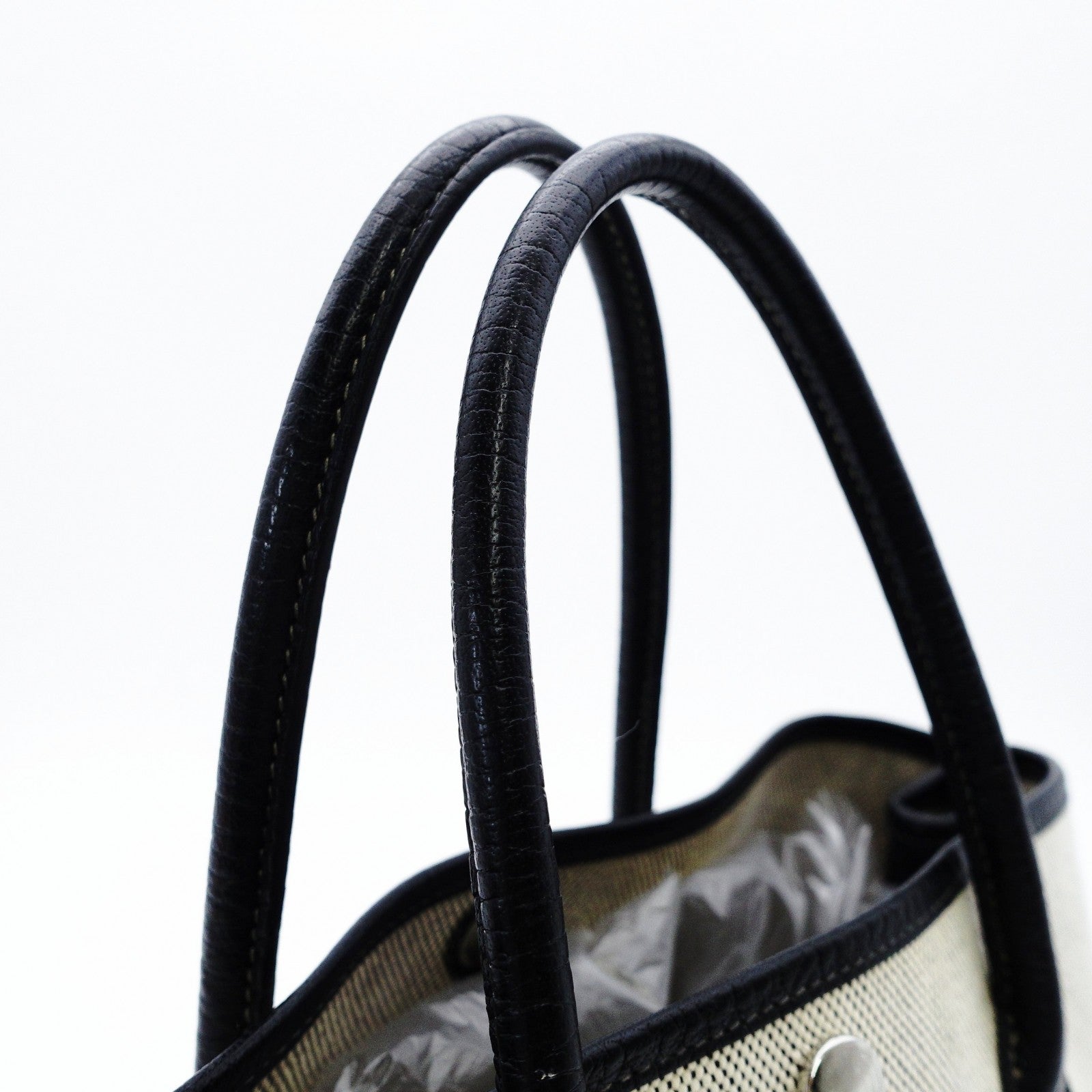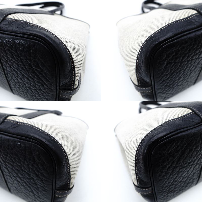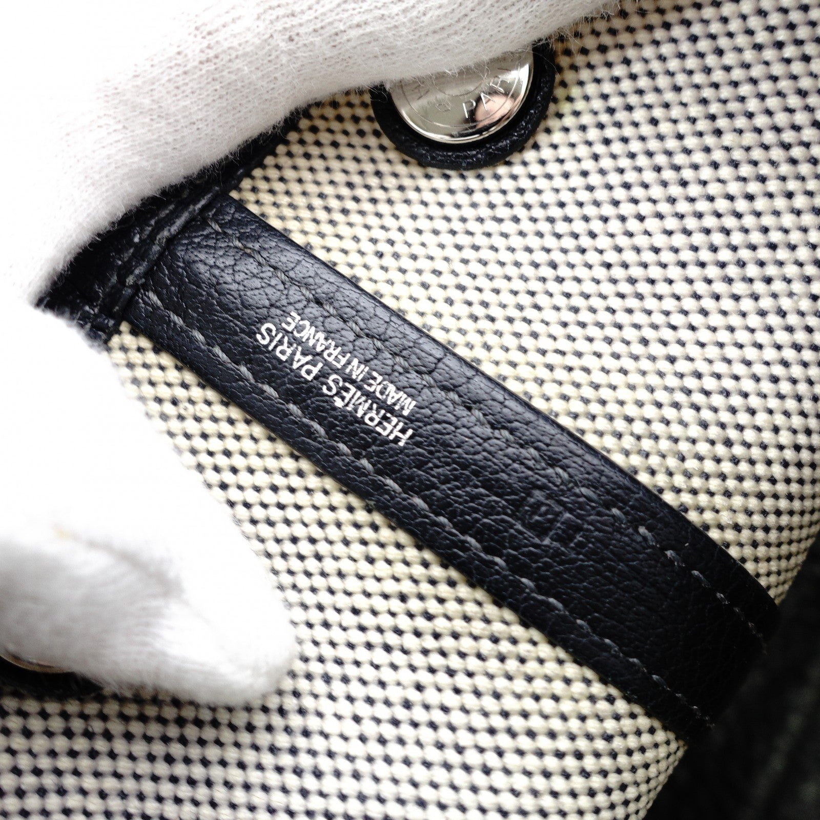 HERMES Garden Party TPM Twill Ash Canvas Leather Black × Beige Tote Bag 7-9-302