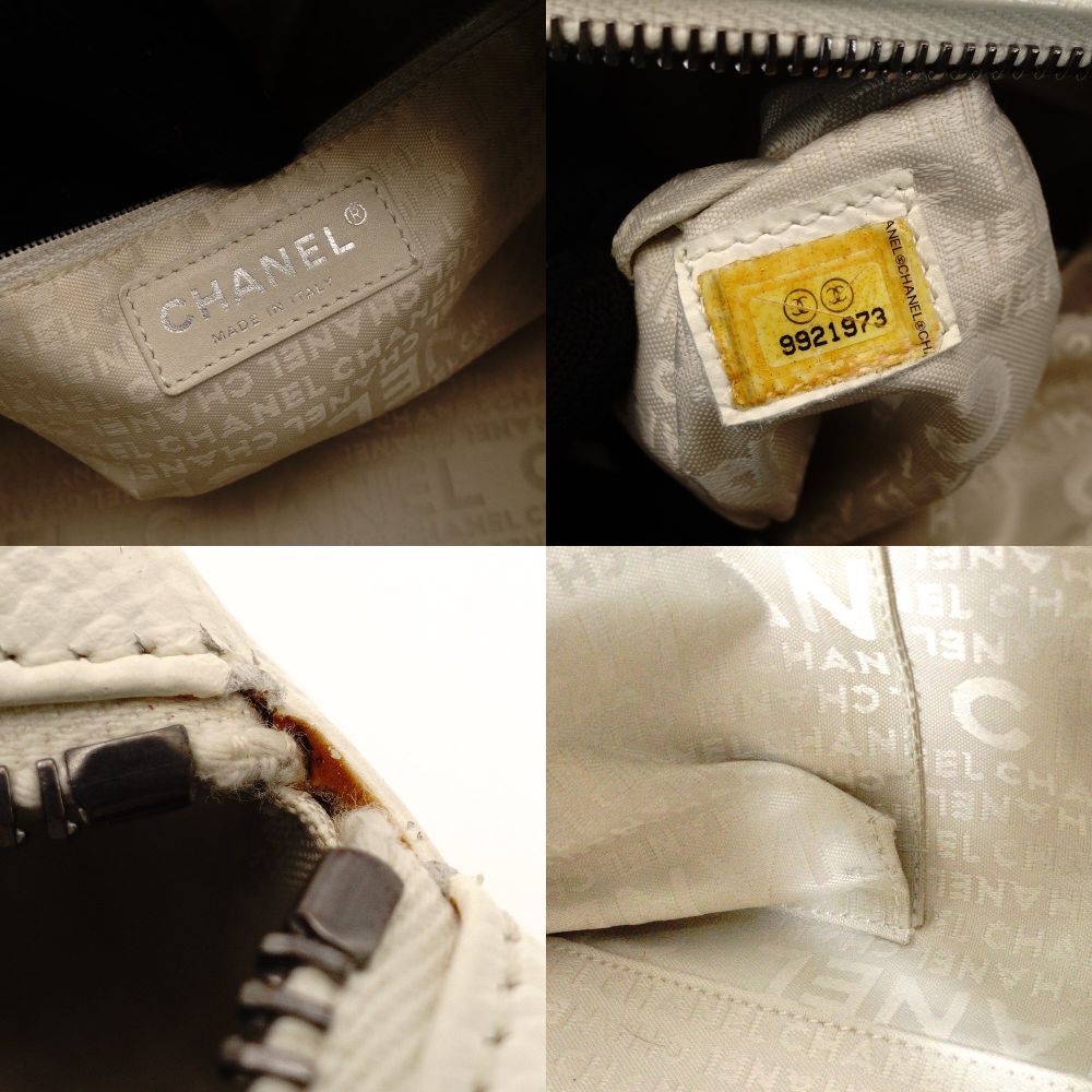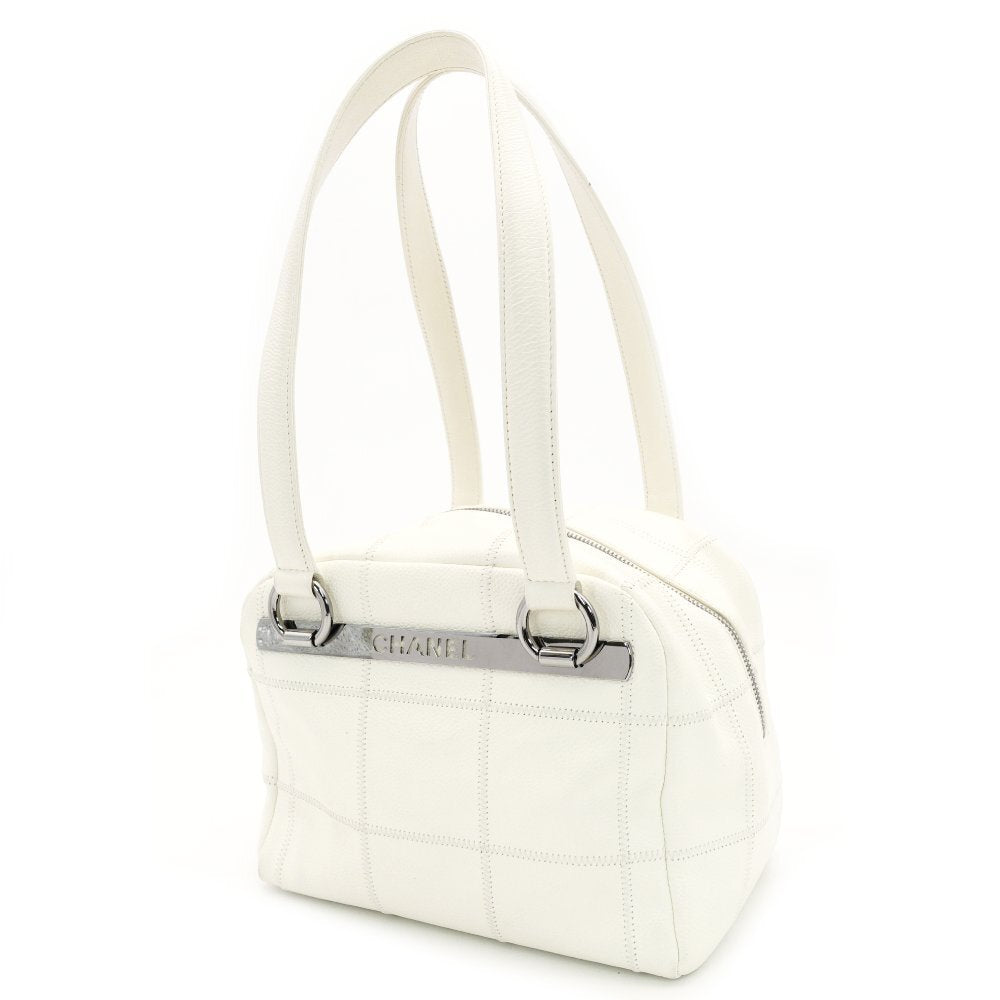 CHANEL Chocolate Bar Shoulder Bag Caviar Leather White Tote Silver Hardware Stitching 7-9-588