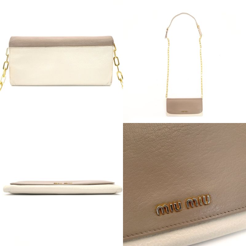 Miu Miu Chain Wallet Shoulder Bag Beige × Off-White Leather Logo 7-9-627