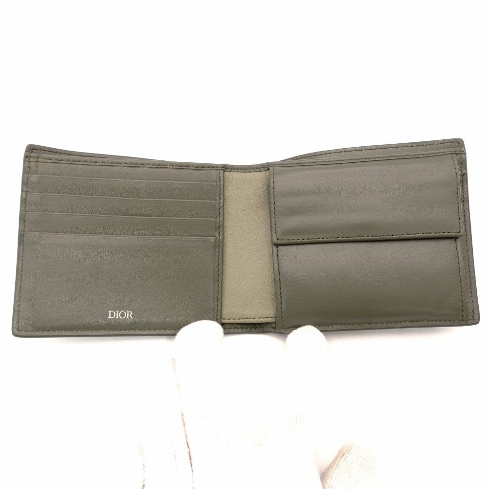 DIOR Men's Khaki Leather Wallet with Logo and Stitching, Box Included R801058