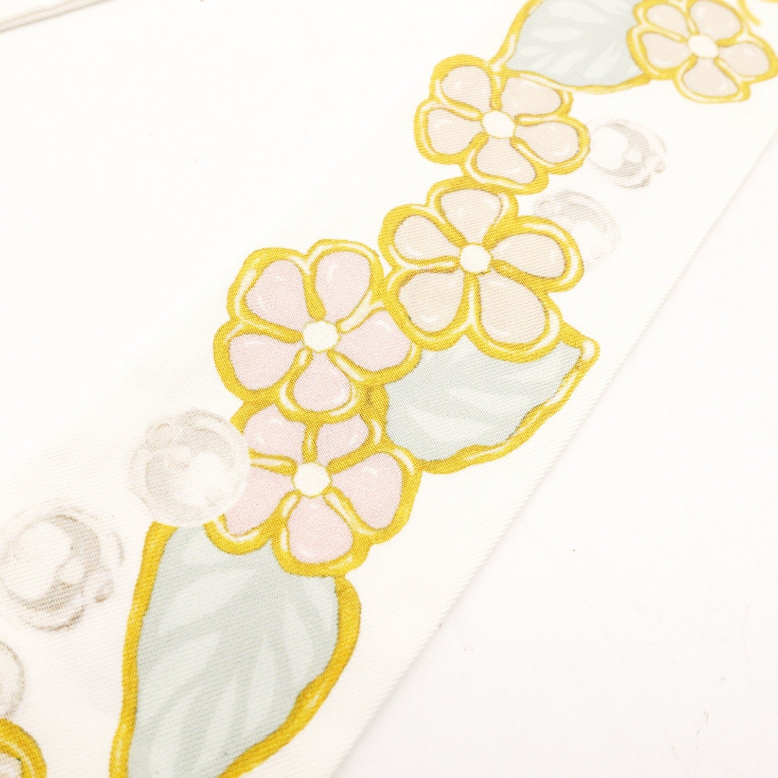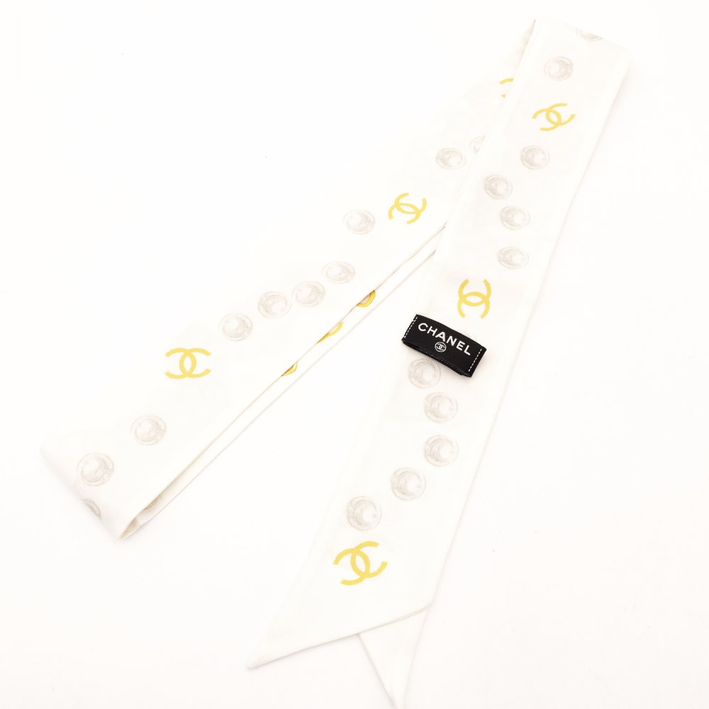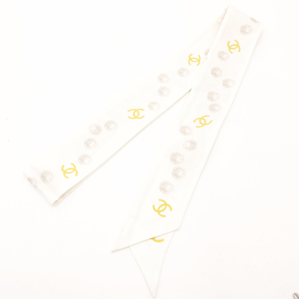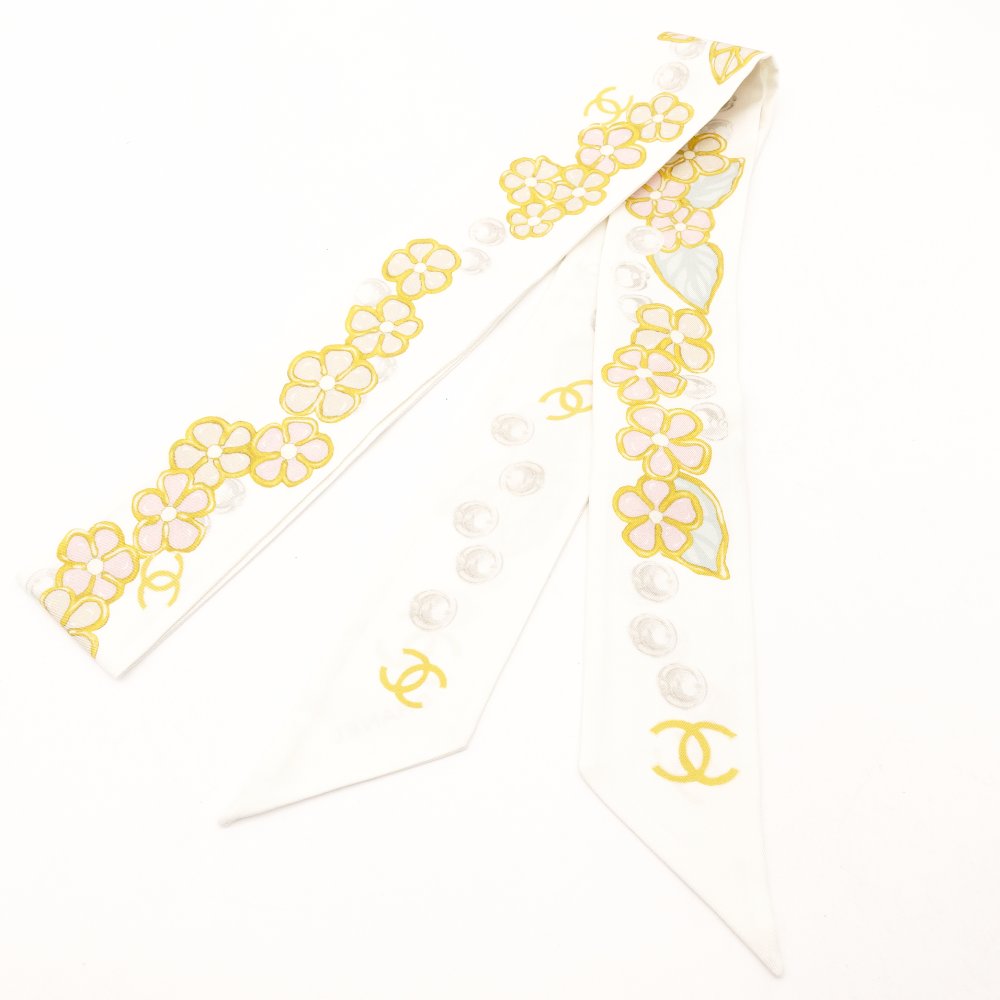 CHANEL Twilly Scarf 100% Silk White Floral Motif White-Tone With Box R801141