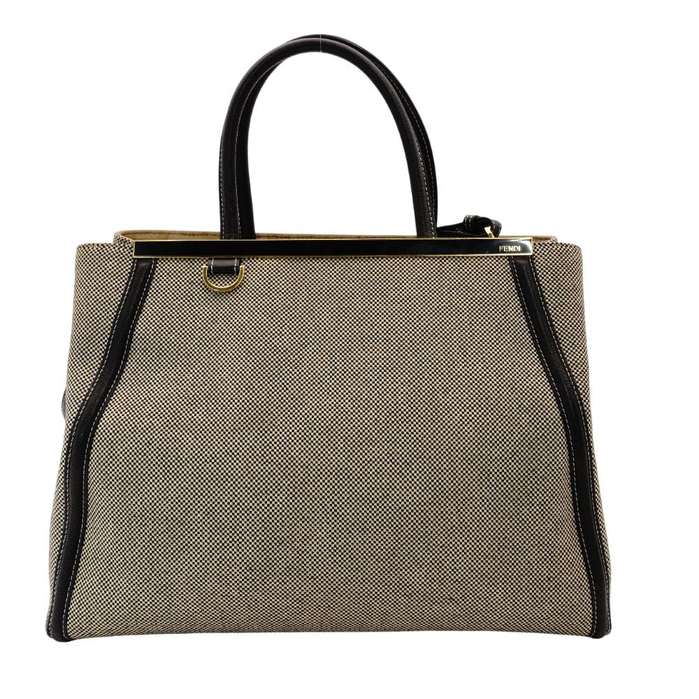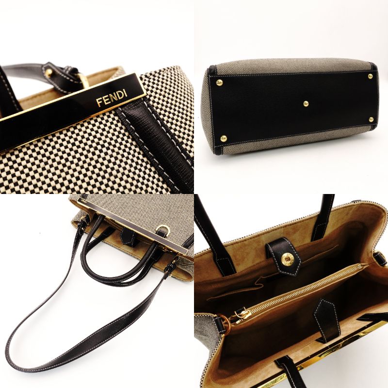 FENDI Toujours Handbag Black × Beige Canvas Leather 2-Way Tote Bag R801481