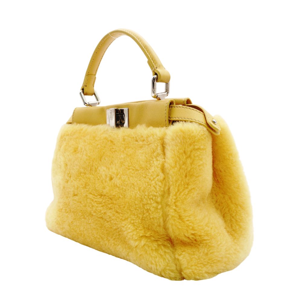 FENDI Micro Peekaboo Handbag Yellow Faux Fur Yellow 2-Way Crossbody R801798