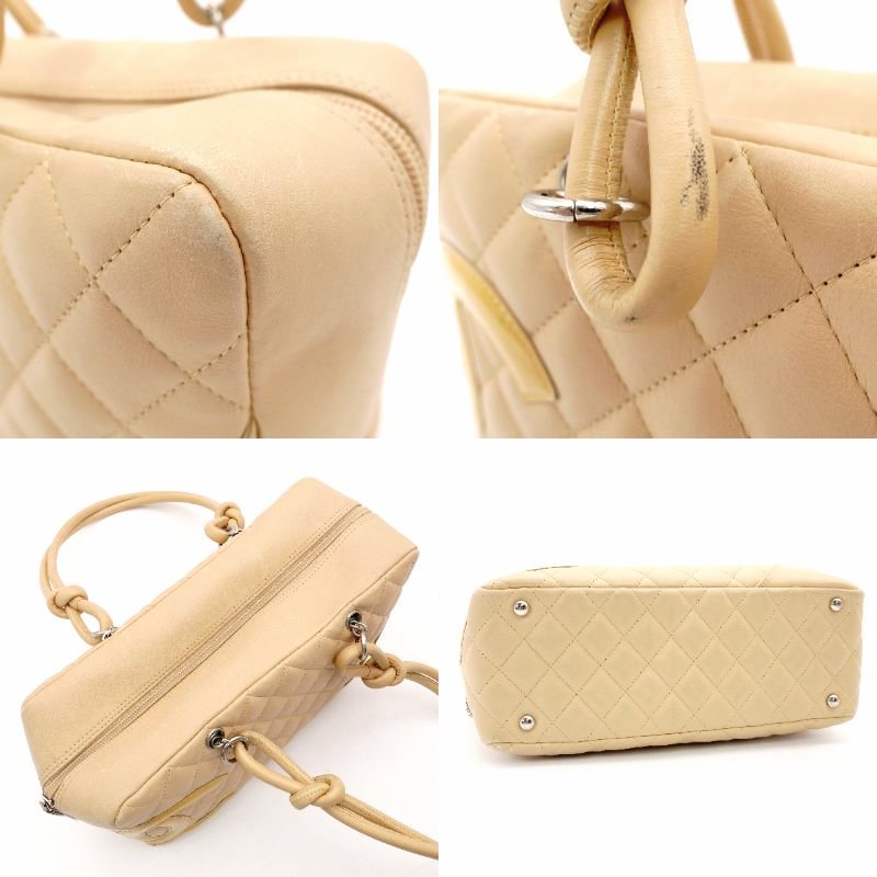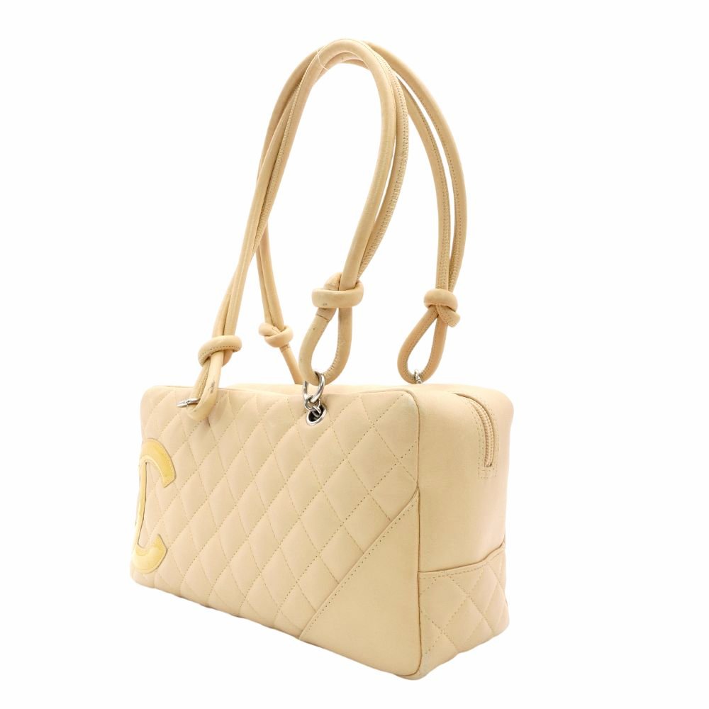 CHANEL Cambon Line Bowling Bag Beige Leather CC Logo Handbag Silver Hardware R8020047