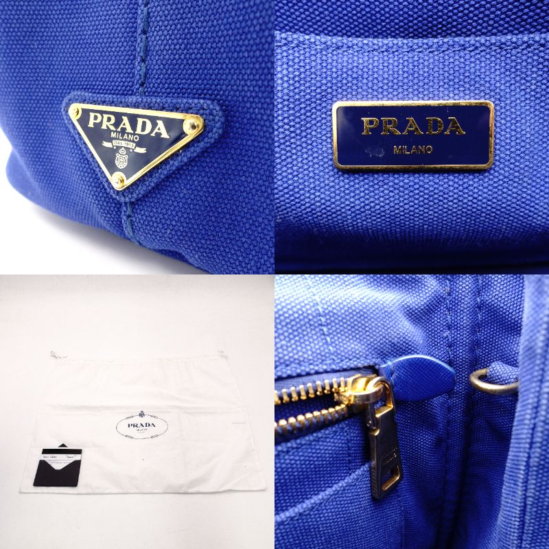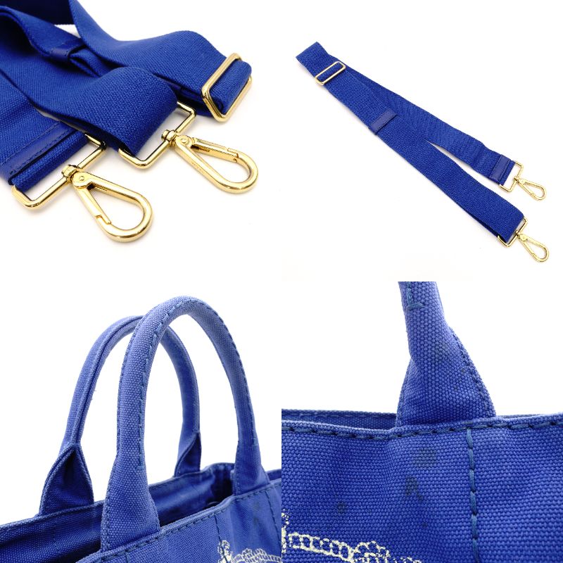 PRADA Canapa Tote BN2439 Canvas 2-Way Blue Handbag Shoulder Bag Gold Hardware Blue R8020071