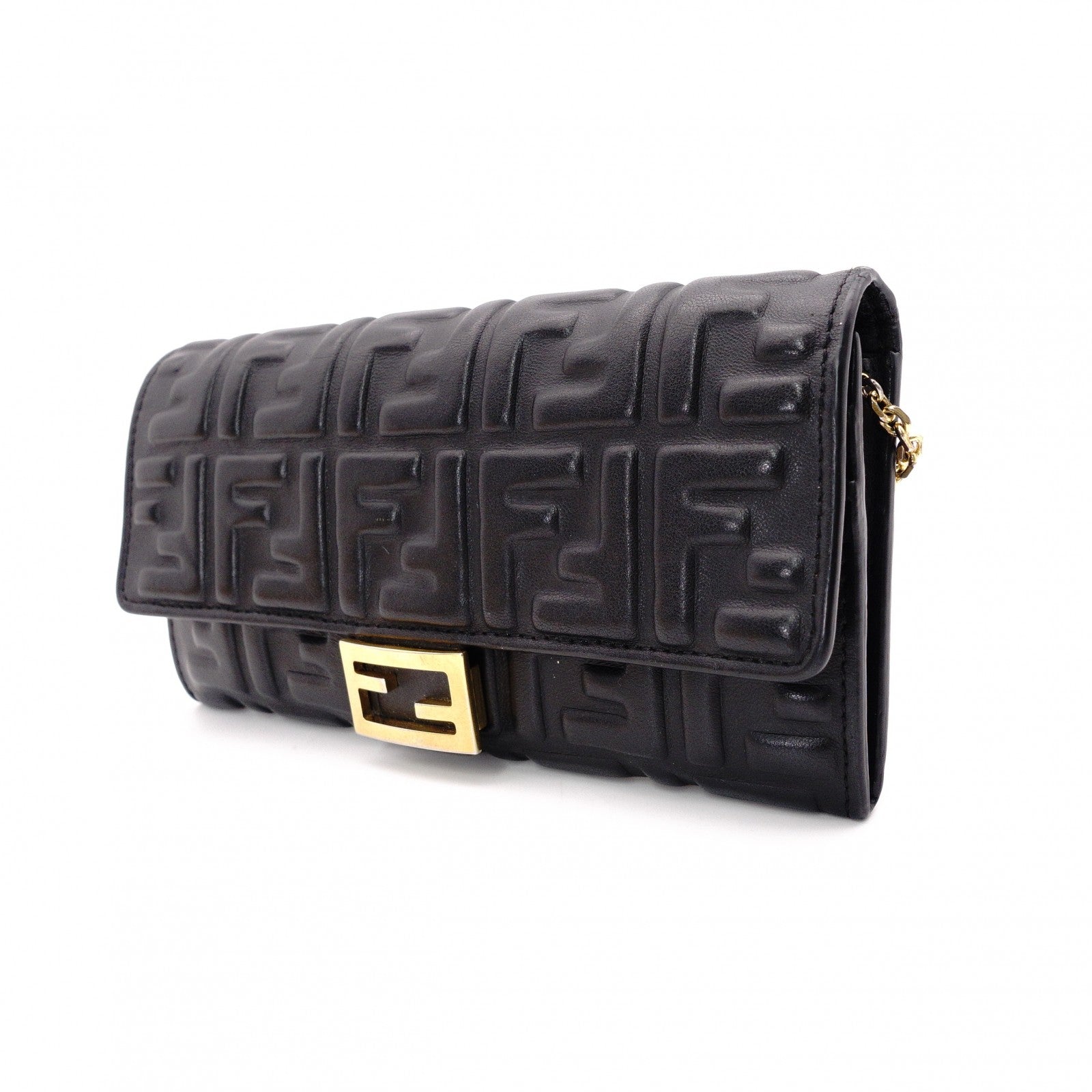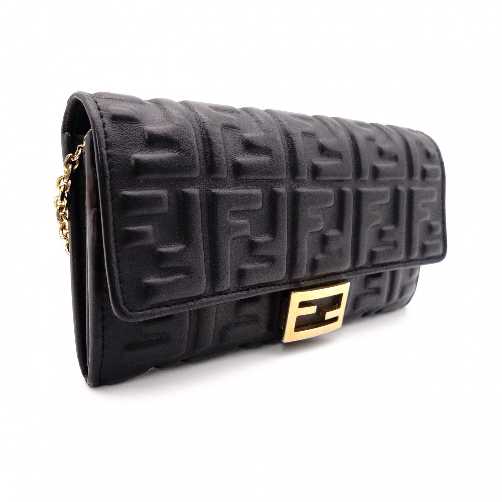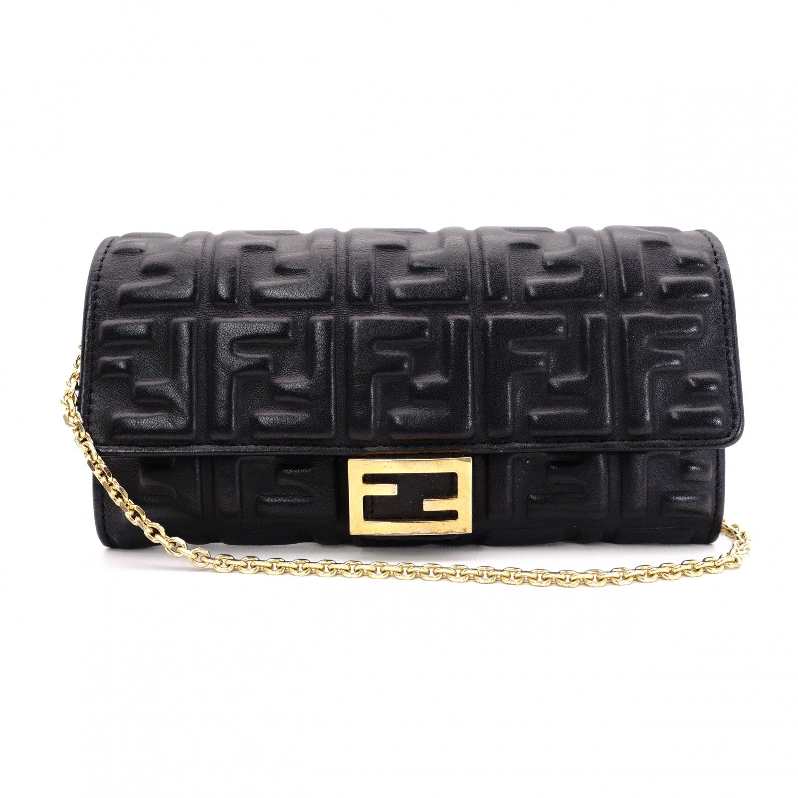 FENDI Baguette Chain Wallet Shoulder Bag, Leather, Black